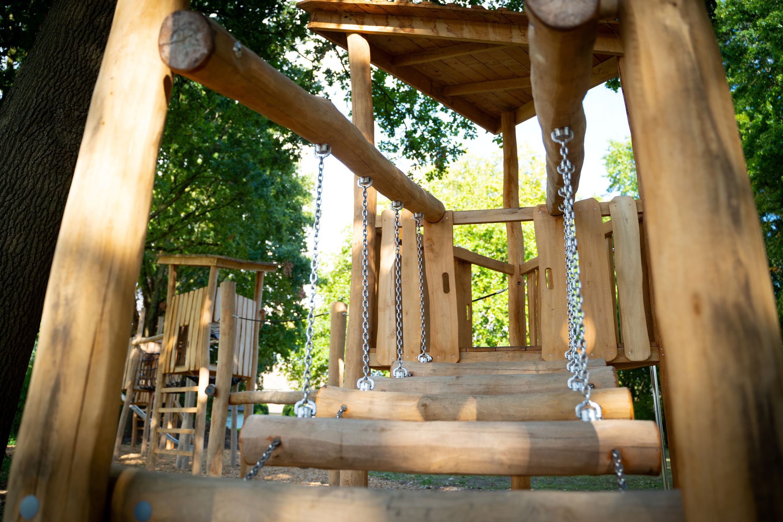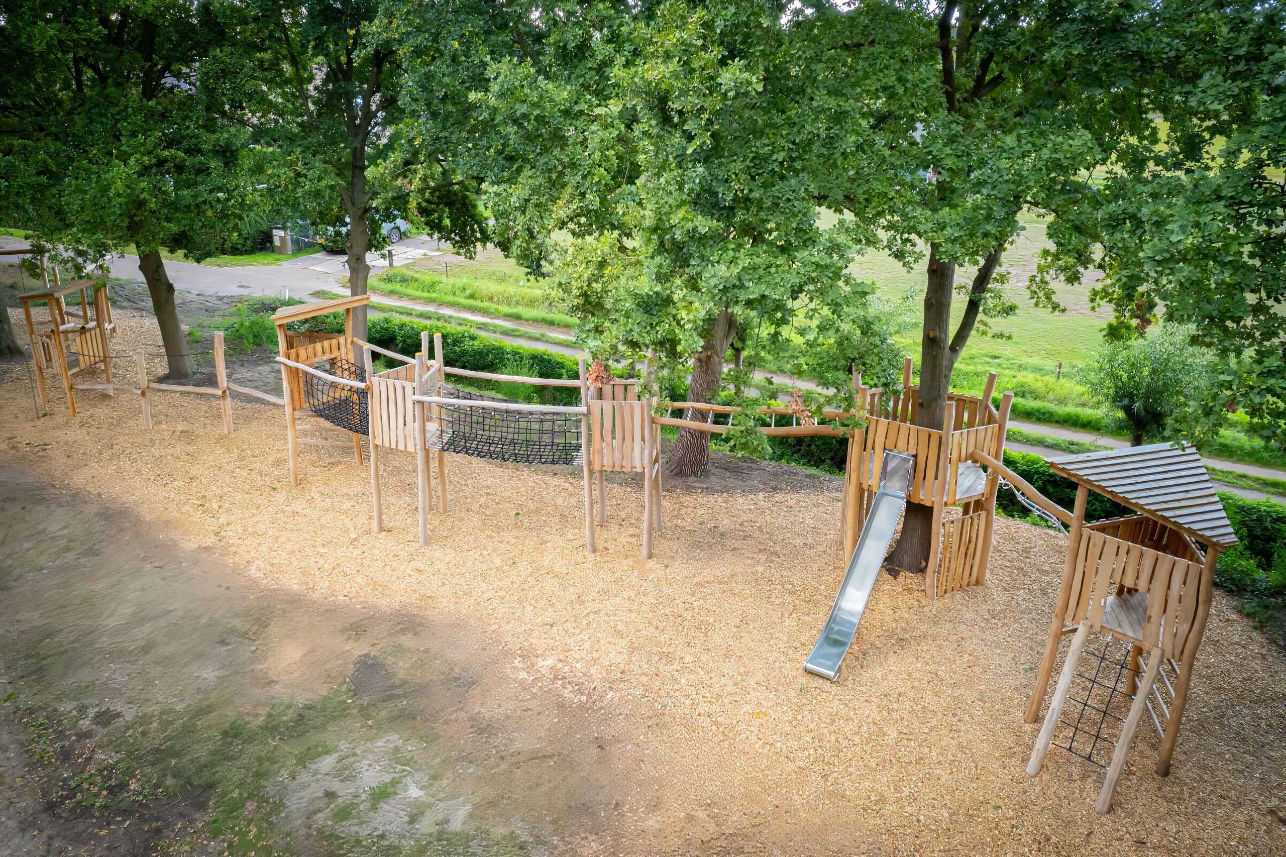 Een van de belangrijkste elementen in het park is het klim- en klauterparcours, dat is ingepast tussen de bestaande bomen. Dit zorgt voor een speelaanleiding die opgaat in de omgeving en tegelijkertijd uitdaging biedt.